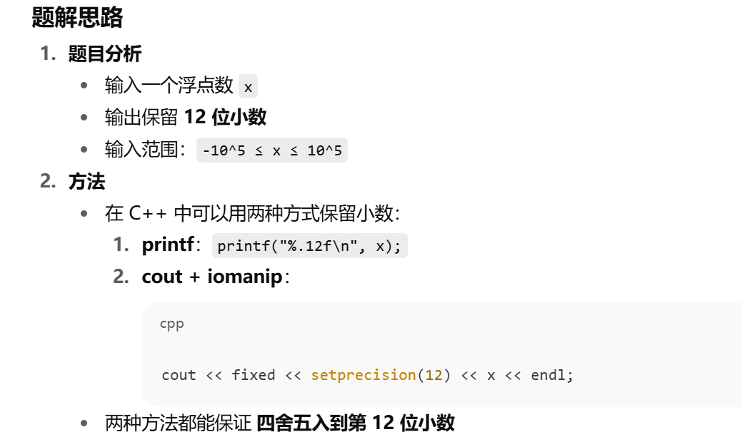 double x; cin >> x; printf("%.12f\n", x); // 保留12位小数