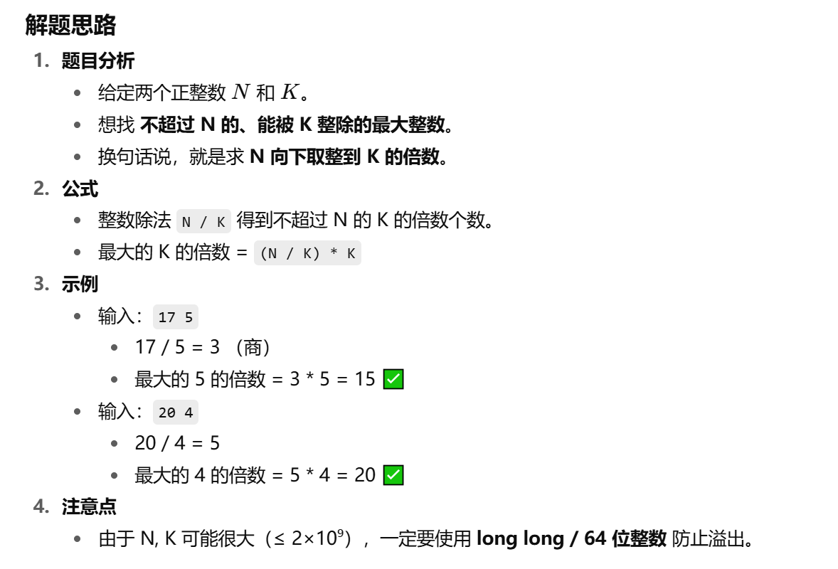 long long N, K; cin >> N >> K; long long lucky = (N / K) * K; cout << lucky << endl;
